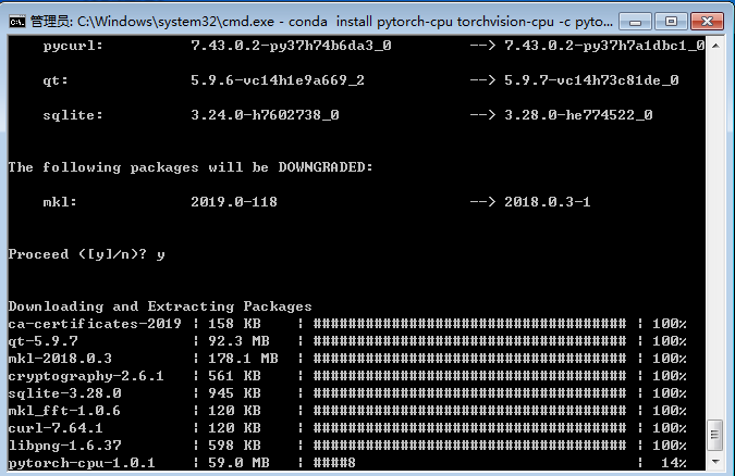 出现这个结果,那么恭喜你,至此PyTorch1.0 & Anaconda3.5已经安装成功。